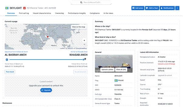 صورة 6: بيانات سفينة Skylight | المصدر: Marine Traffic
