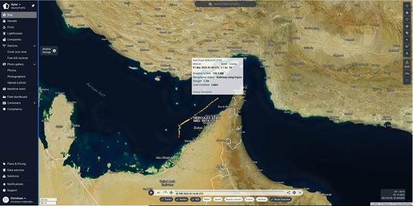 صورة 11: مسار سفينة Hercules Star وقت استهدافها | المصدر: kpler