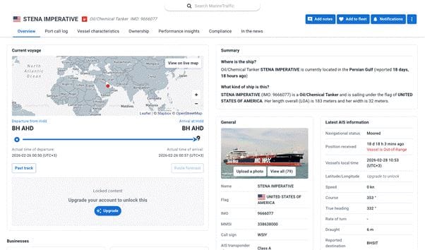 صورة 13: بيانات سفينة Stena Imperative | المصدر: Marine Traffic