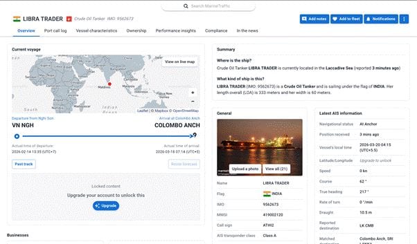 صورة 19: بيانات سفينة Libra Trader | المصدر: Marine Traffic