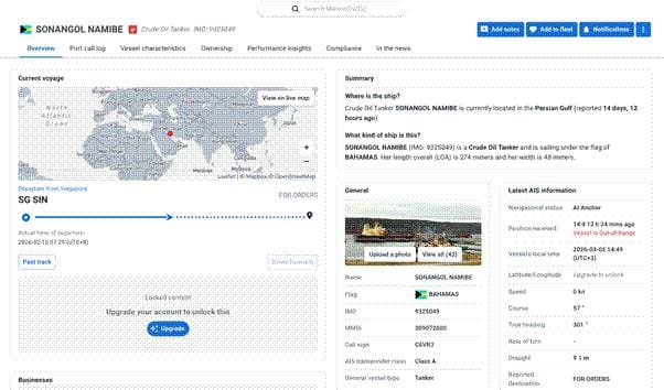 صورة 21: بيانات سفينة SONANGOL NAMIBE | المصدر: Marine Traffic